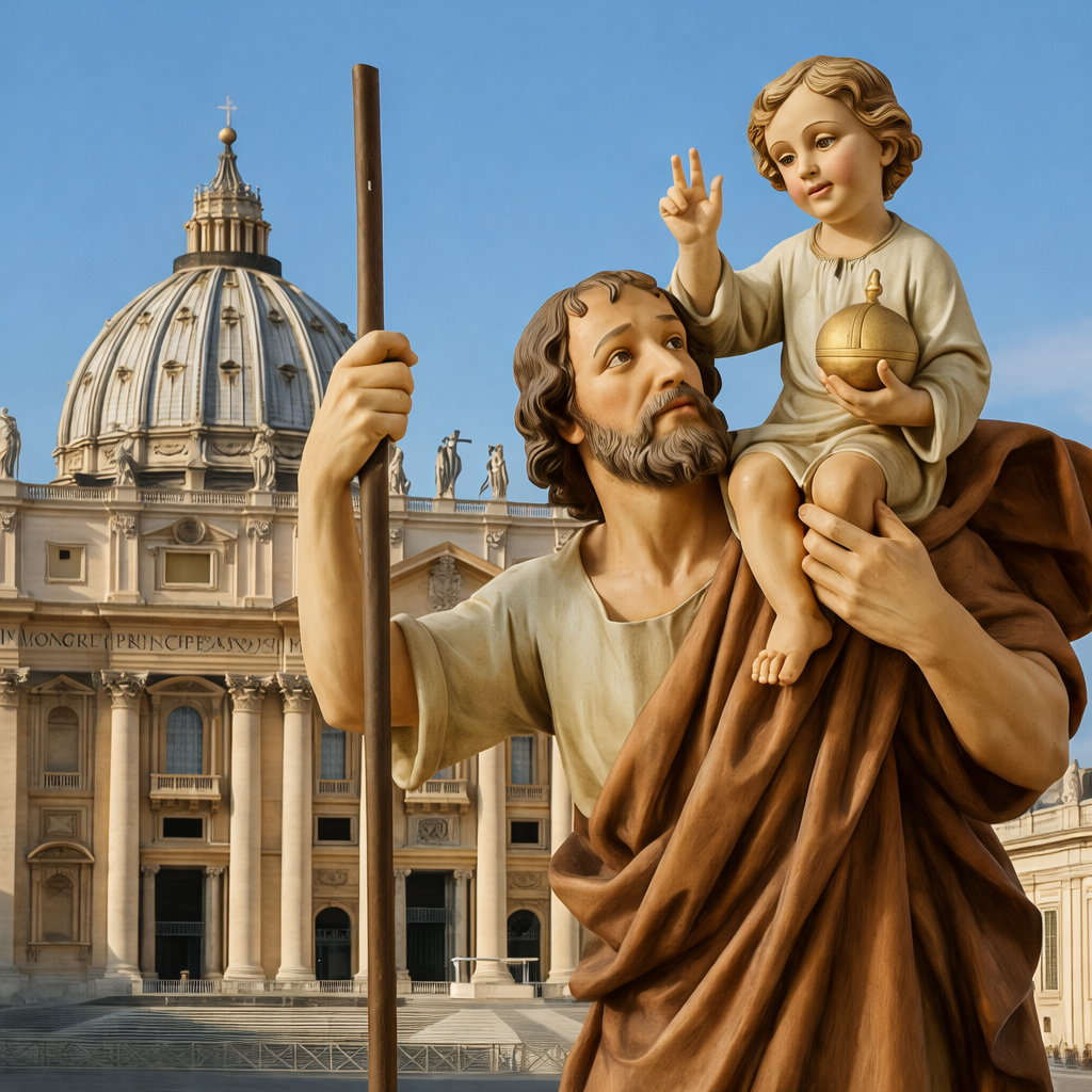 São Cristóvão é o padroeiro dos viajantes. Segundo a tradição, ele ajudava pessoas a atravessar um rio e um dia carregou um menino que era Jesus. Após isso, se converteu e passou a servir a Deus. Seu nome significa “aquele que carrega Cristo”.